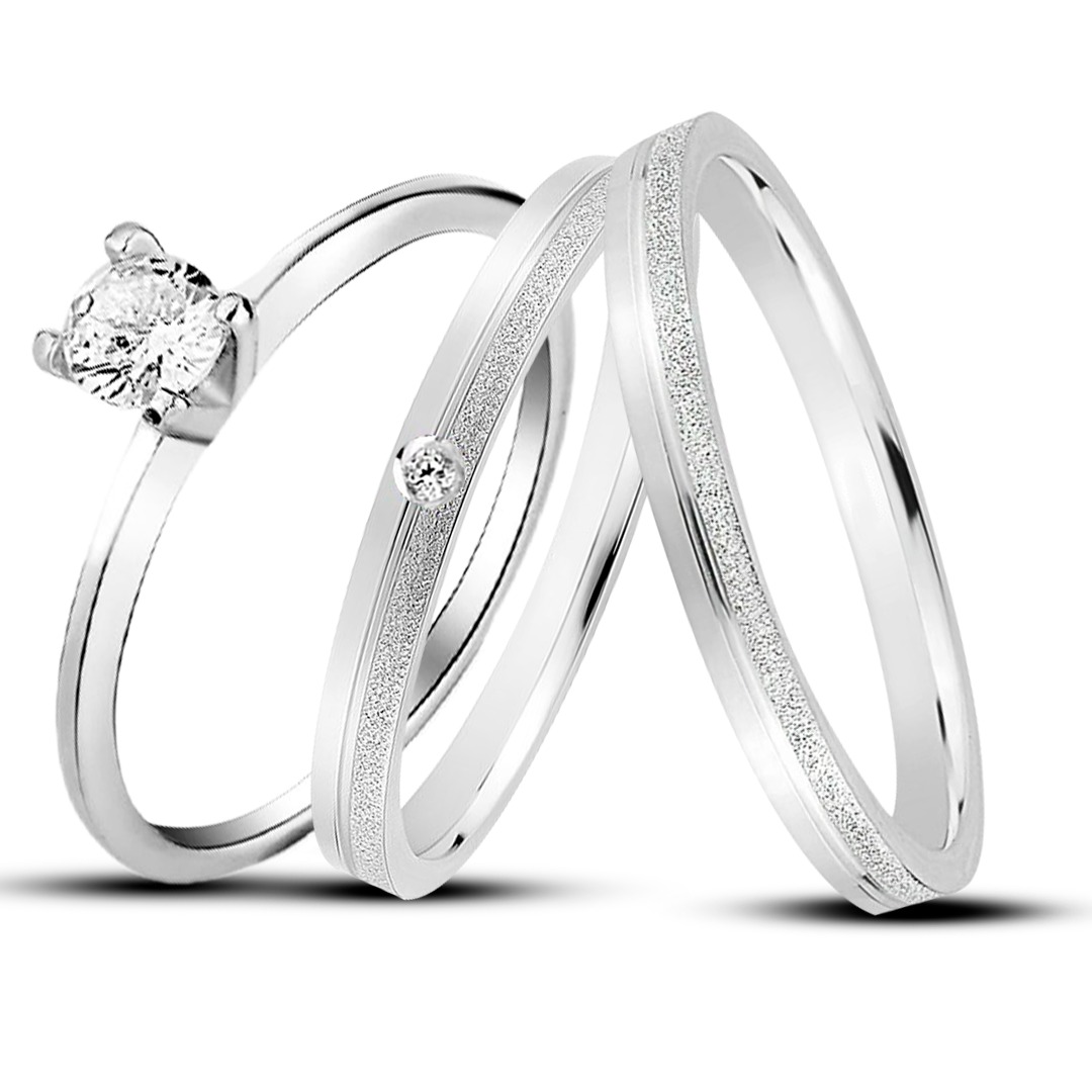 Par de Alianças Cinderela 2mm de Namoro + Anel solitário em Prata 950