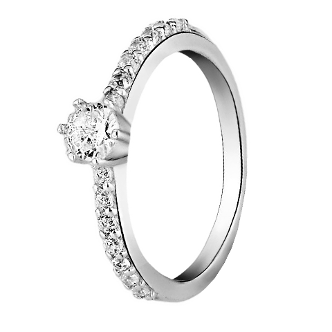 Anel solitário cravejado prata 925