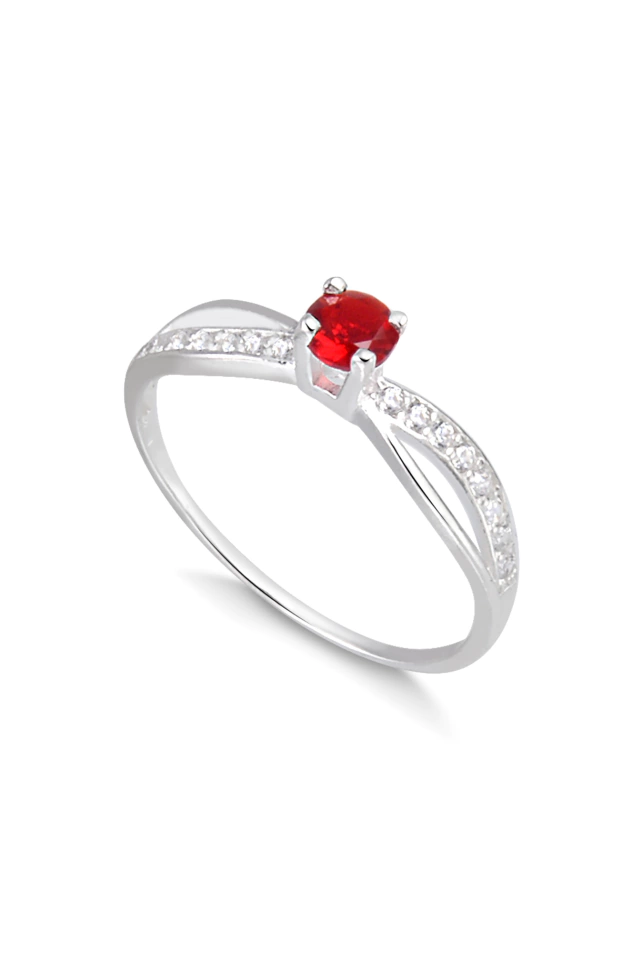 Anel solitário Eternally pedra vermelha - PRATA 950
