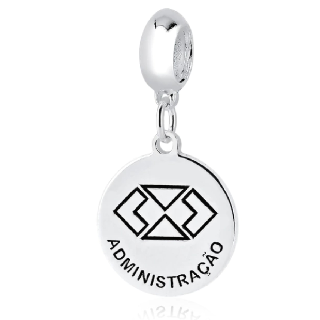 Berloque Profissão, este berloque é composto por uma medalha de prata lisa com o símbolo e texto relaciolado ao curso escolhido.