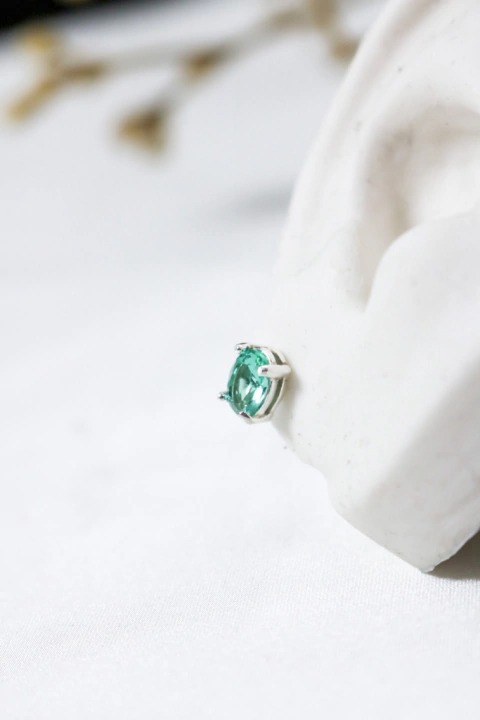 Brinco com pedra oval turmalina.