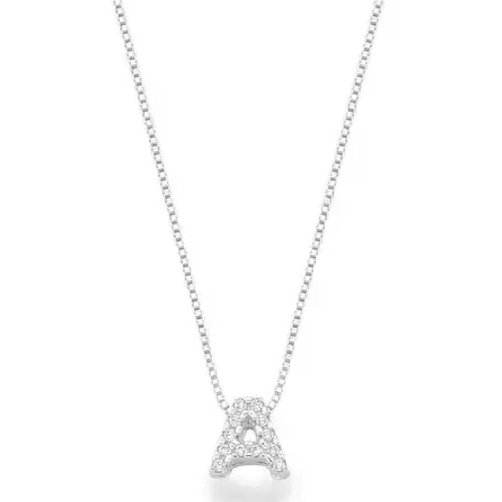 Colar Personalizado Com letra Cravejada, esse produto usa corrente de prata veneziana, vem com Pingente Letras Cravejadas, que é composto por prata cravejada em forma de letras;