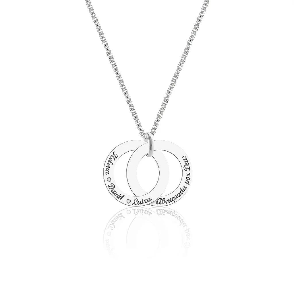 1- Personalize o primeiro Elo com nomes, datas ou textos. Em caso de mais de um nome, os mesmos serão separados por pequenos corações, tal como a foto.