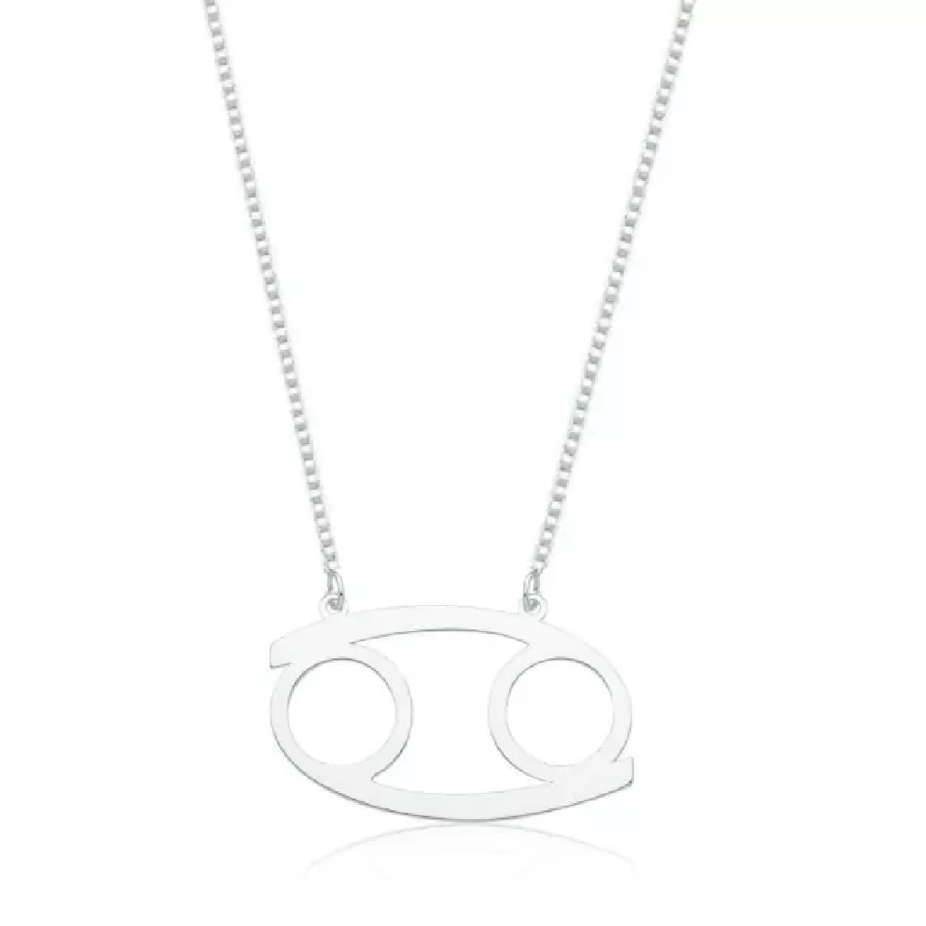 Gargantilha Signo Câncer de Prata 925, esse produto usa corrente de prata veneziana, vem com Pingente Signo Câncer, que é composto por prata lisa em forma de signo Câncer;