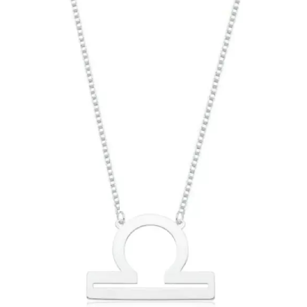 Colar Signo Libra de Prata 925, esse produto usa corrente de prata veneziana, vem com Pingente Signo Libra, que é composto por prata texturizada em forma do signo Libra;