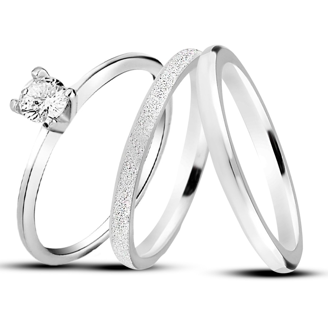Par de alianças Anabelle 2mm de namoro + anel solitário prata 950