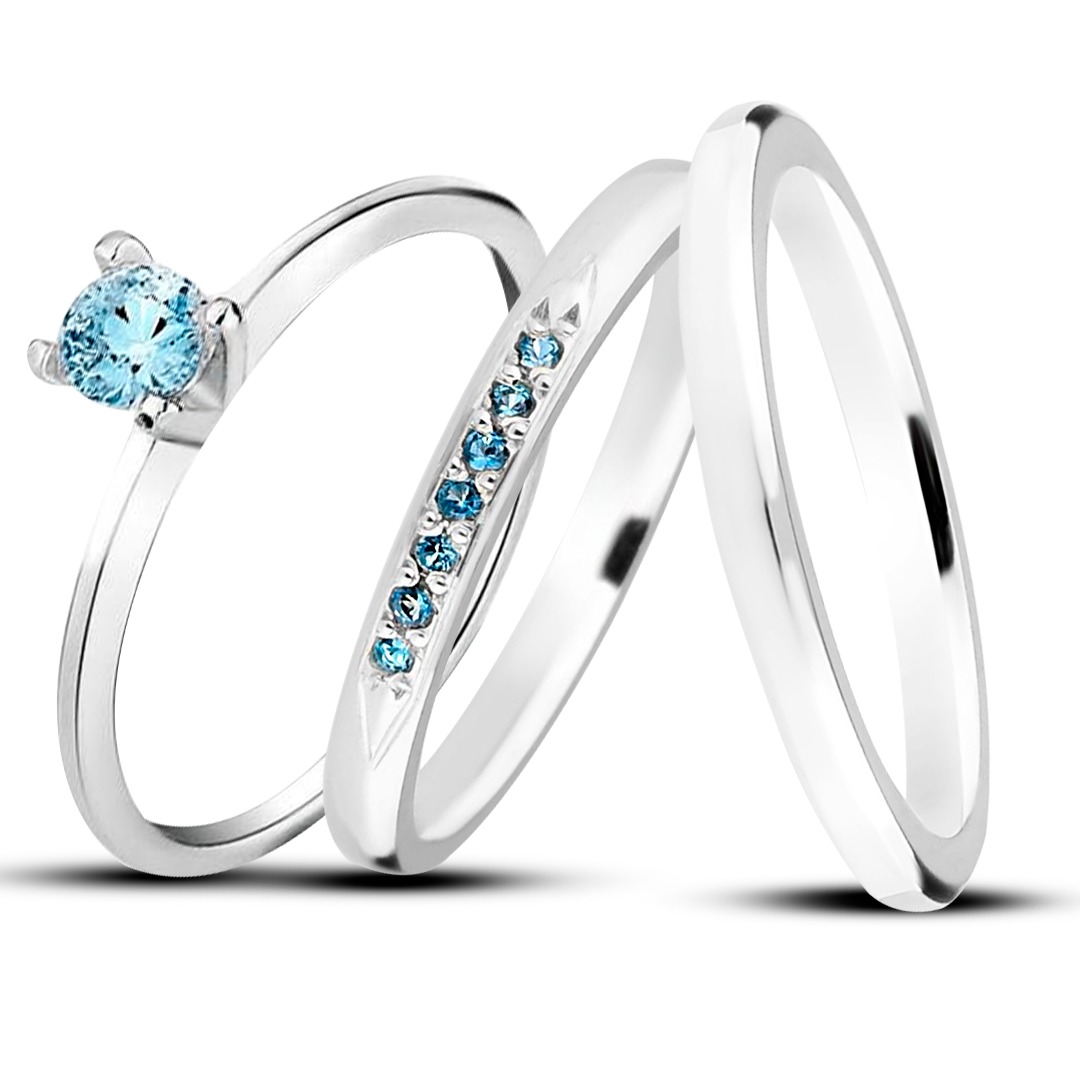 Par de alianças Mora 2mm Azul bebe de namoro + anel solitário Classic em prata 950