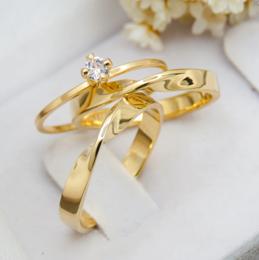 Par de alianças casamento Torcida 3mm de moeda antiga - Anel solitário Brinde