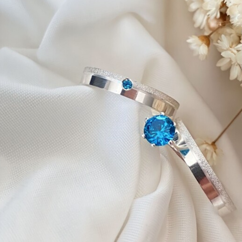 Par de alianças Namoro Pedra azul Prata 950 Cinderela 3mm