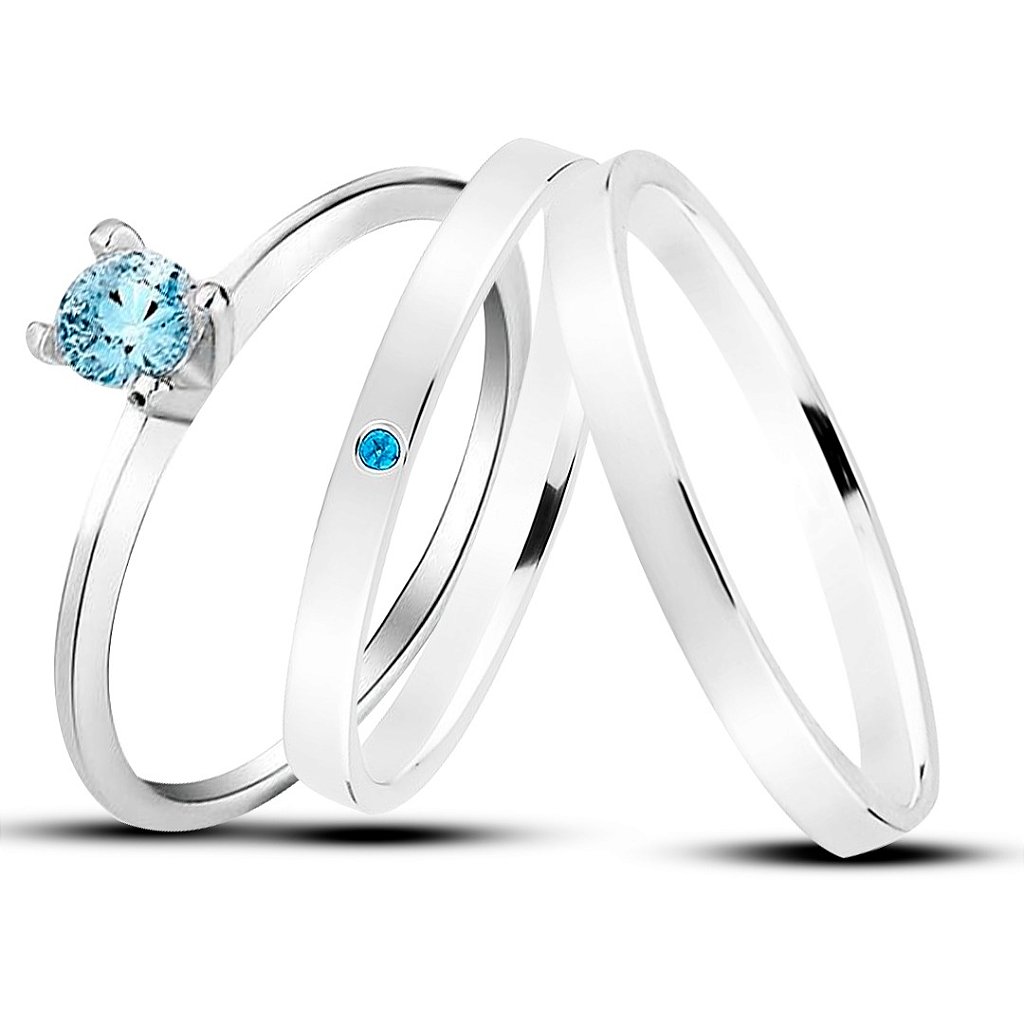 Par de Alianças de Prata de Namoro com Pedra Azul (BB) Gravação Grátis