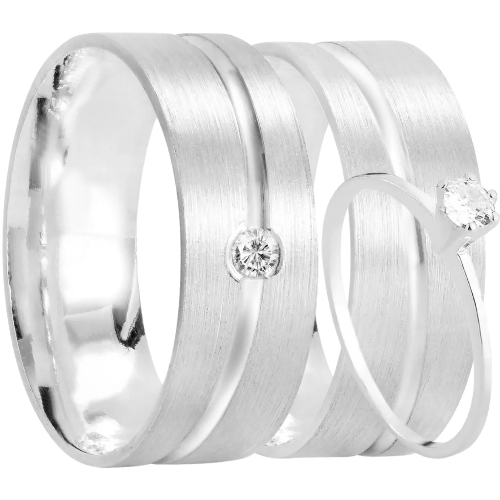 Par de alianças Elisía 10mm de namoro + anel solitário prata 950