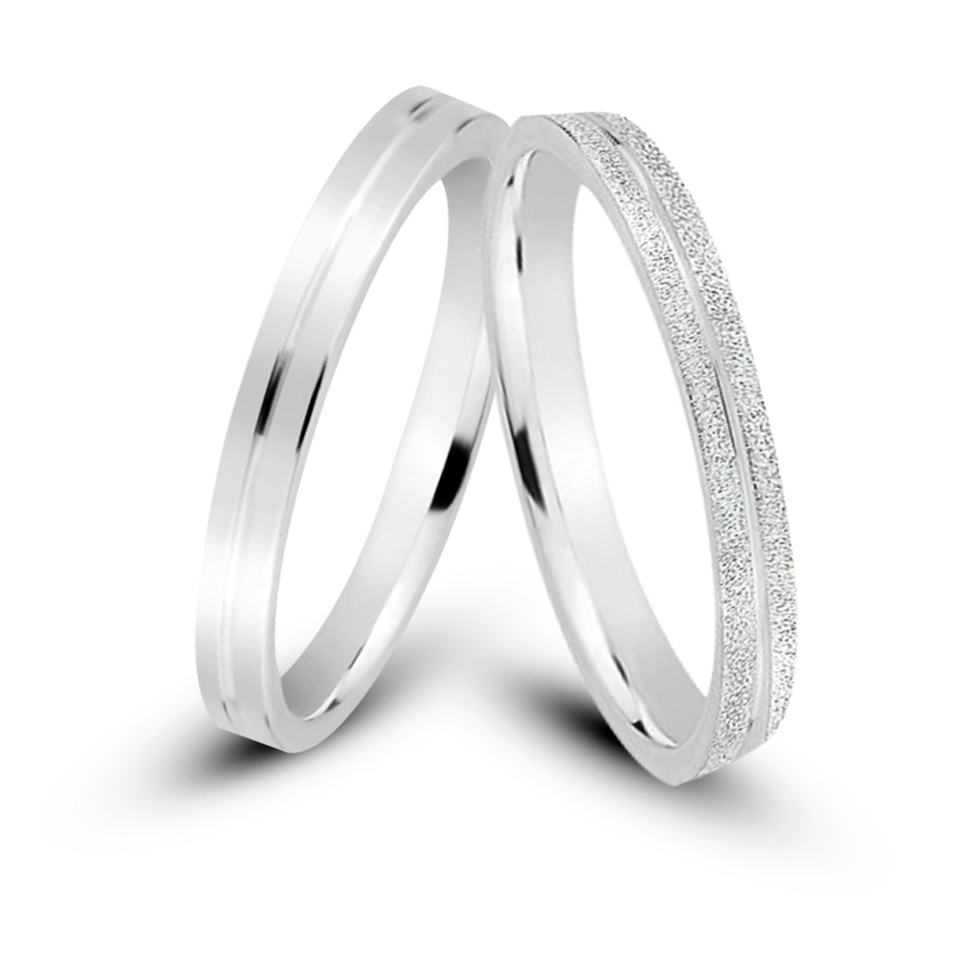 Par de alianças Jasmim 2mm de Namoro prata 950