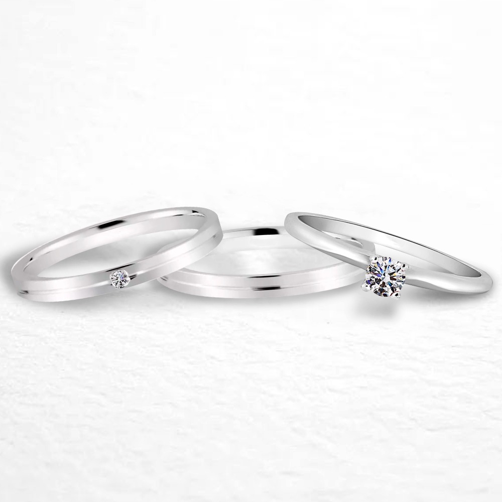 Par de alianças Kaia 2Kaia 2mm de namoro + anel solitário Classic prata 950