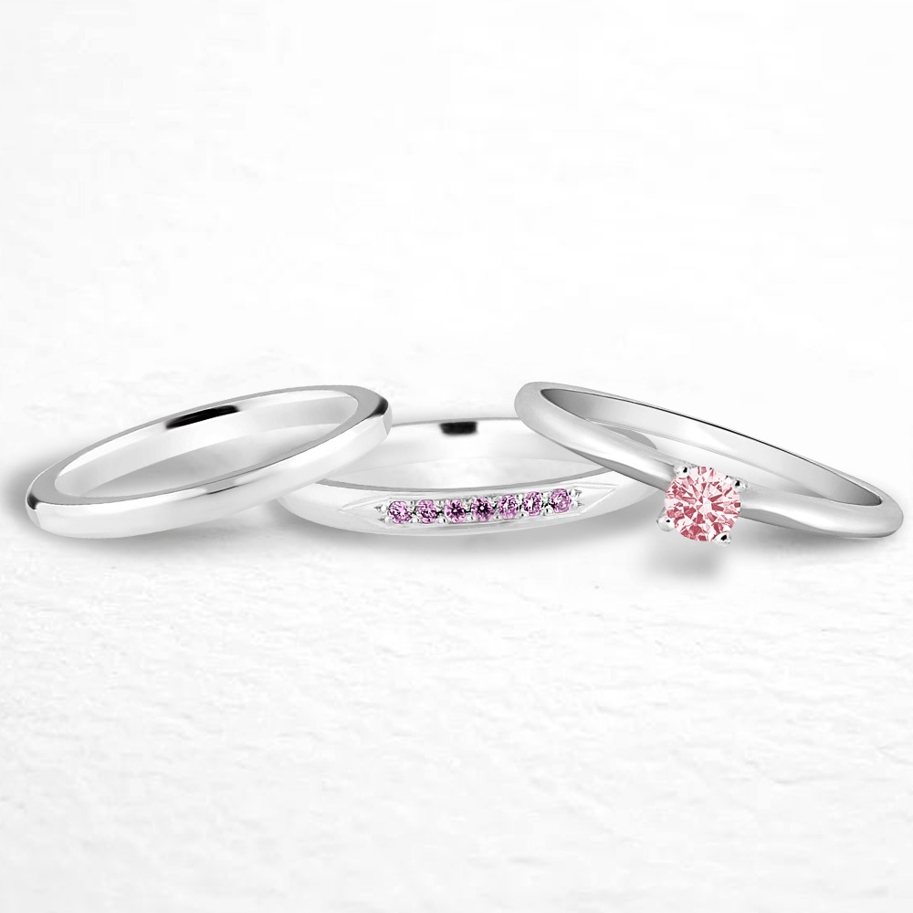 Par de alianças Mora 2mm rosa de namoro + anel solitário Classic prata 950