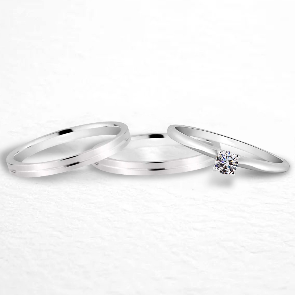 Par de alianças Sienna 2mm de namoro + anel solitário prata 950