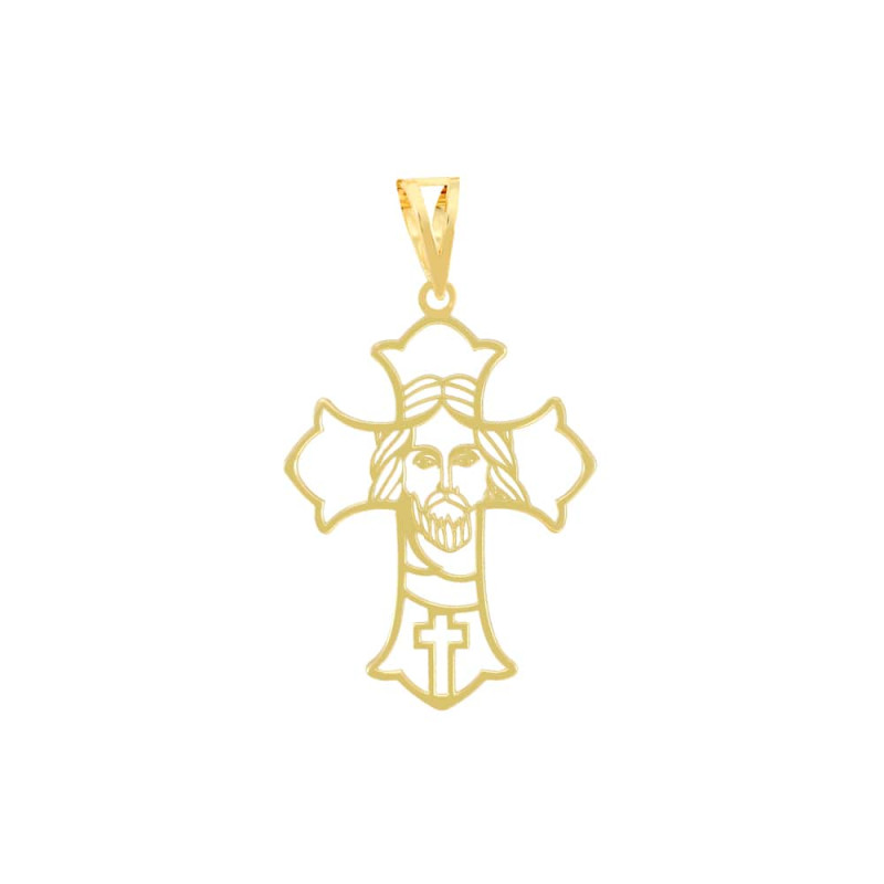 Pingente Unissex Crucifixo com Face de Cristo - Ouro 18k