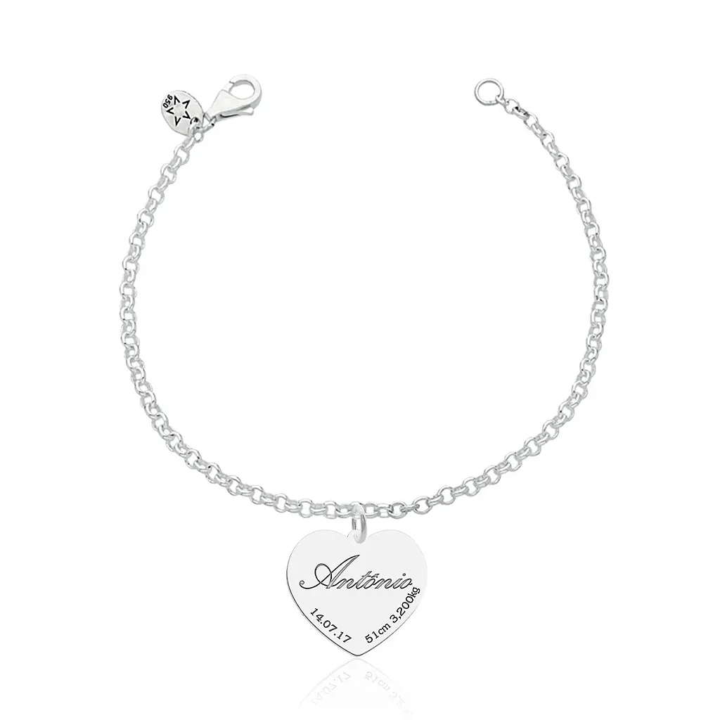 É possível personalizar o Pulseira com o nome e os dados do nascimento de seu (sua) filho (a) em um lado e, no outro, com uma mensagem curta e especial.