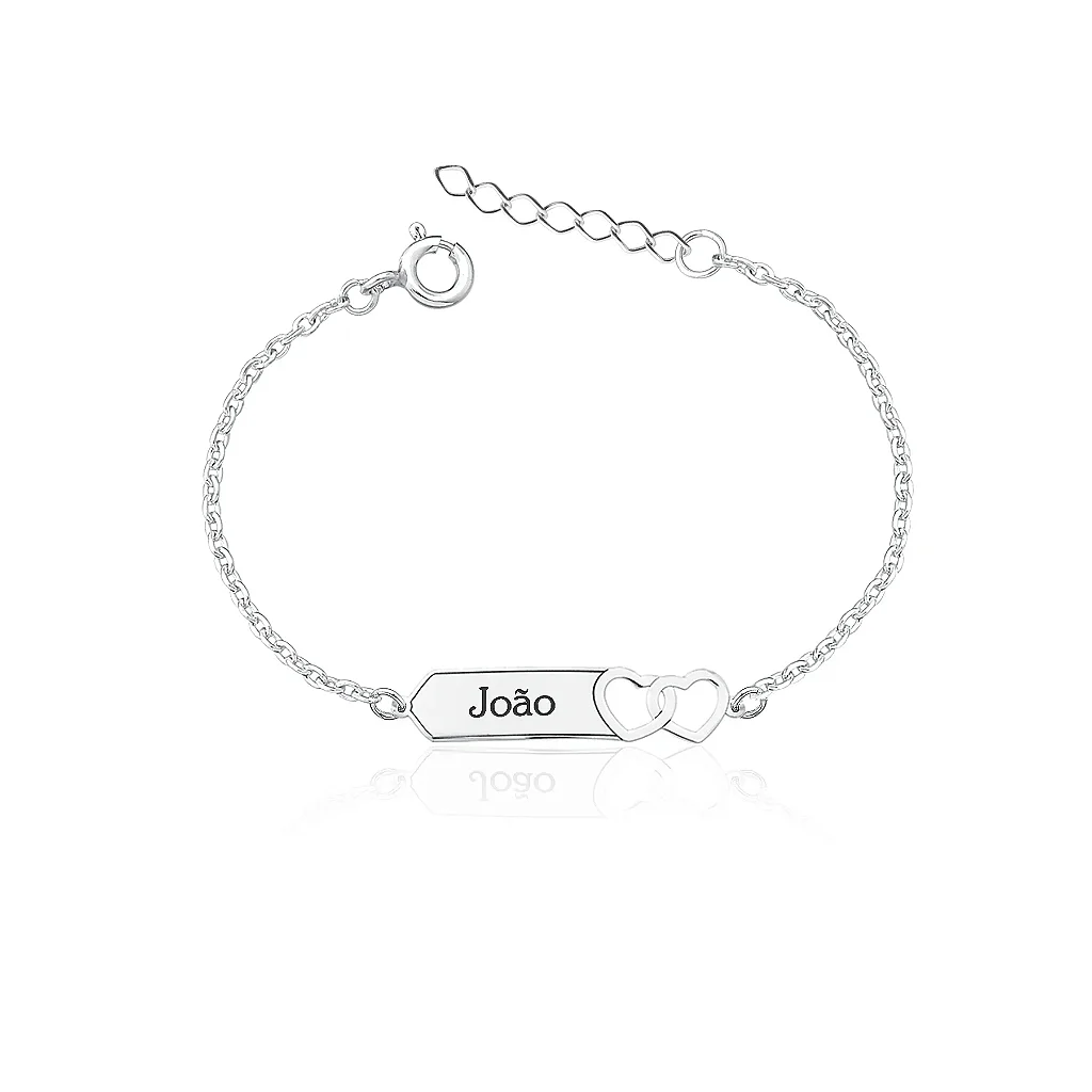 Pulseira Prata Infantil Personalizada Coração Duplo