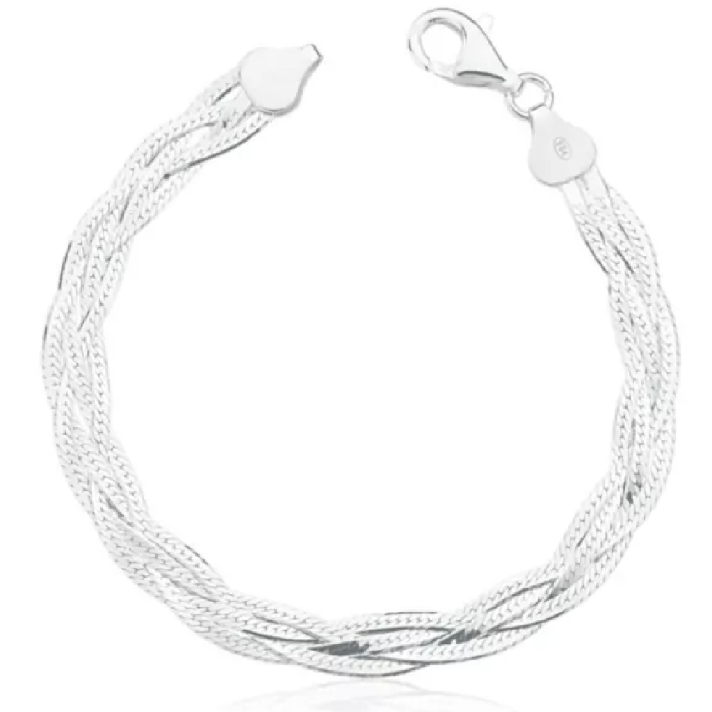Pulseira Laminada Trançada, mPusleira trançada com frios de pratas laminados, possui um designer perfeito, confeccionada em prata.