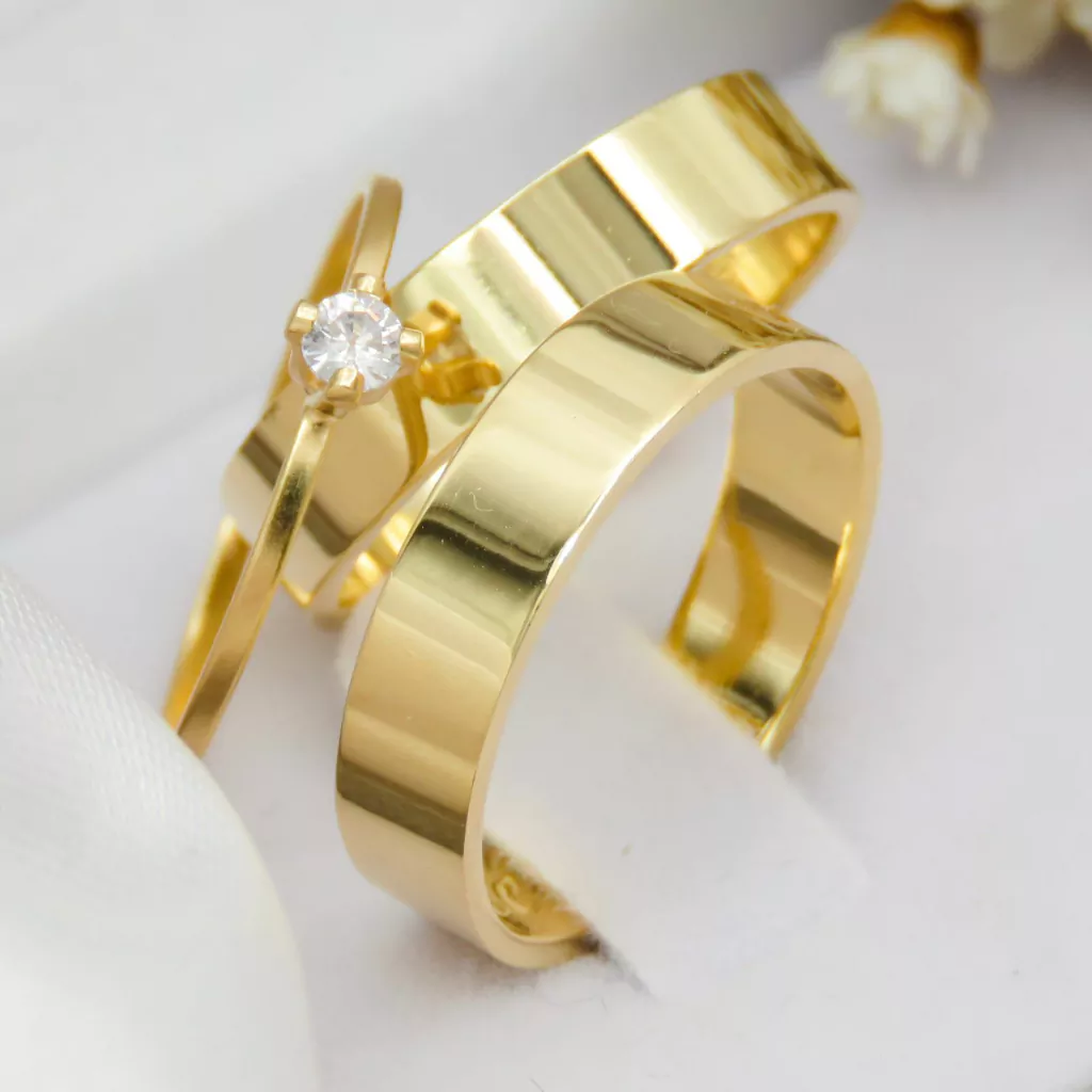 Par de alianças casamento Malta 5mm de moeda antiga - Anel solitário Brinde